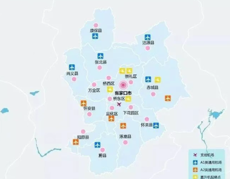 根據(jù)《張家口市通用航空產(chǎn)業(yè)發(fā)展規(guī)劃》的消息,2023年到2035年,張家口將新建蔚縣、尚義縣、康??h、沽源天際線、宣化區(qū)、陽原縣、涿鹿縣、懷安縣8個(gè)通用機(jī)場(chǎng)。張家口已建成的機(jī)場(chǎng)